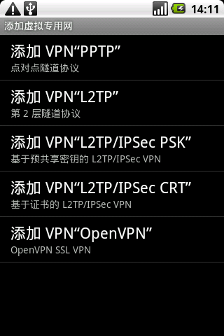Android安卓 2.0 PPTP设置